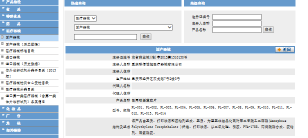 5.醫(yī)療器械注冊(cè)證書(shū)由國(guó)家食品藥品監(jiān)督管理局統(tǒng)一印制,相應(yīng)內(nèi)容由審批注冊(cè)的(食品)藥品監(jiān)督管理部門填寫,查詢結(jié)果如下: