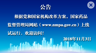 11月3日,新改版國(guó)家藥品監(jiān)督管理局網(wǎng)站正式上線(www.nmpa.gov.cn)。